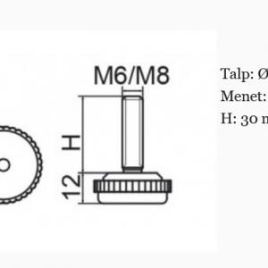 Állítható láb M6x30-as szárral, 30mm talppal, 100 db, recés